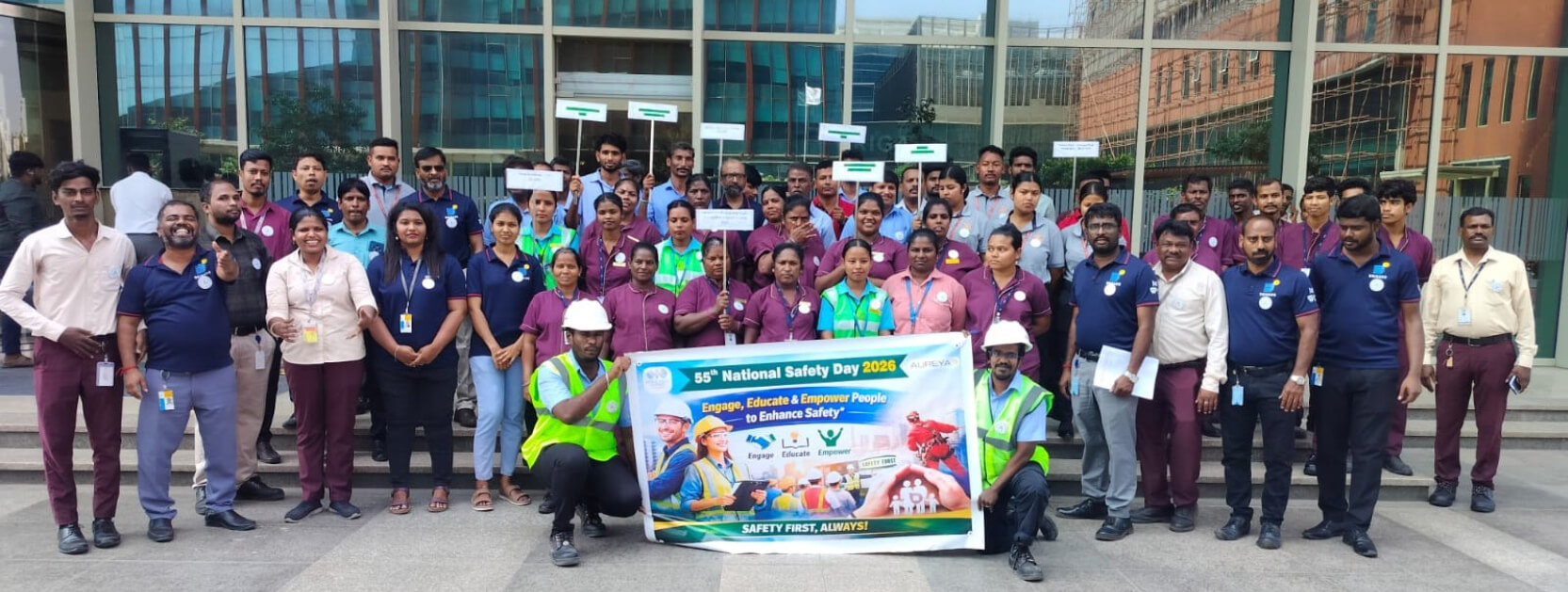 The day began with the flag hoisting by Mr. Poovazhagan from our tenant company, Caterpillar. This was followed by safety badge distribution and a collective safety pledge, reinforcing the importance of shared responsibility in creating a secure work environment.